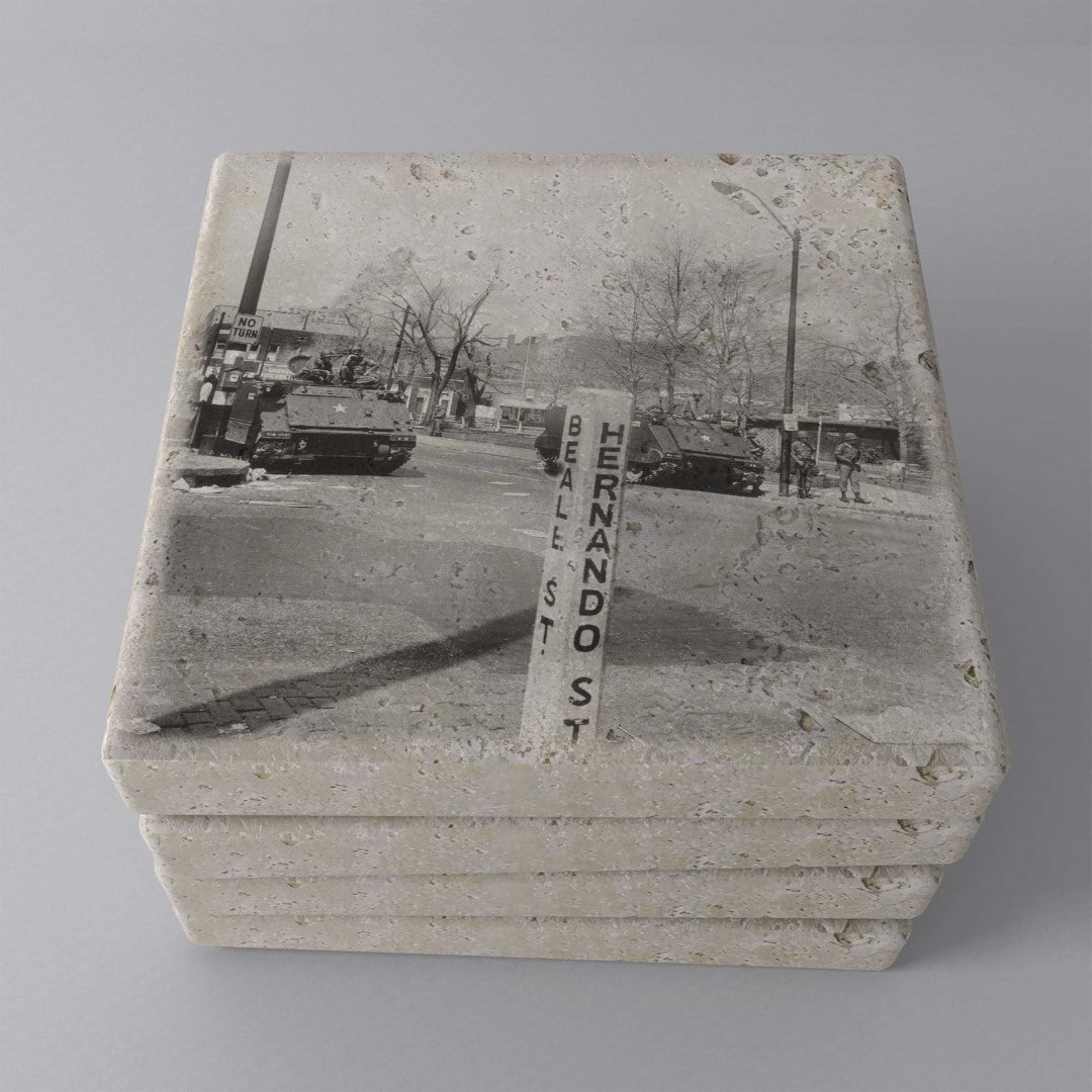 Crafted from genuine marble and travertine, these coasters transform the everyday into art. Each piece showcases an archival image from The Legacy Line — a small but powerful reminder of history at your fingertips.