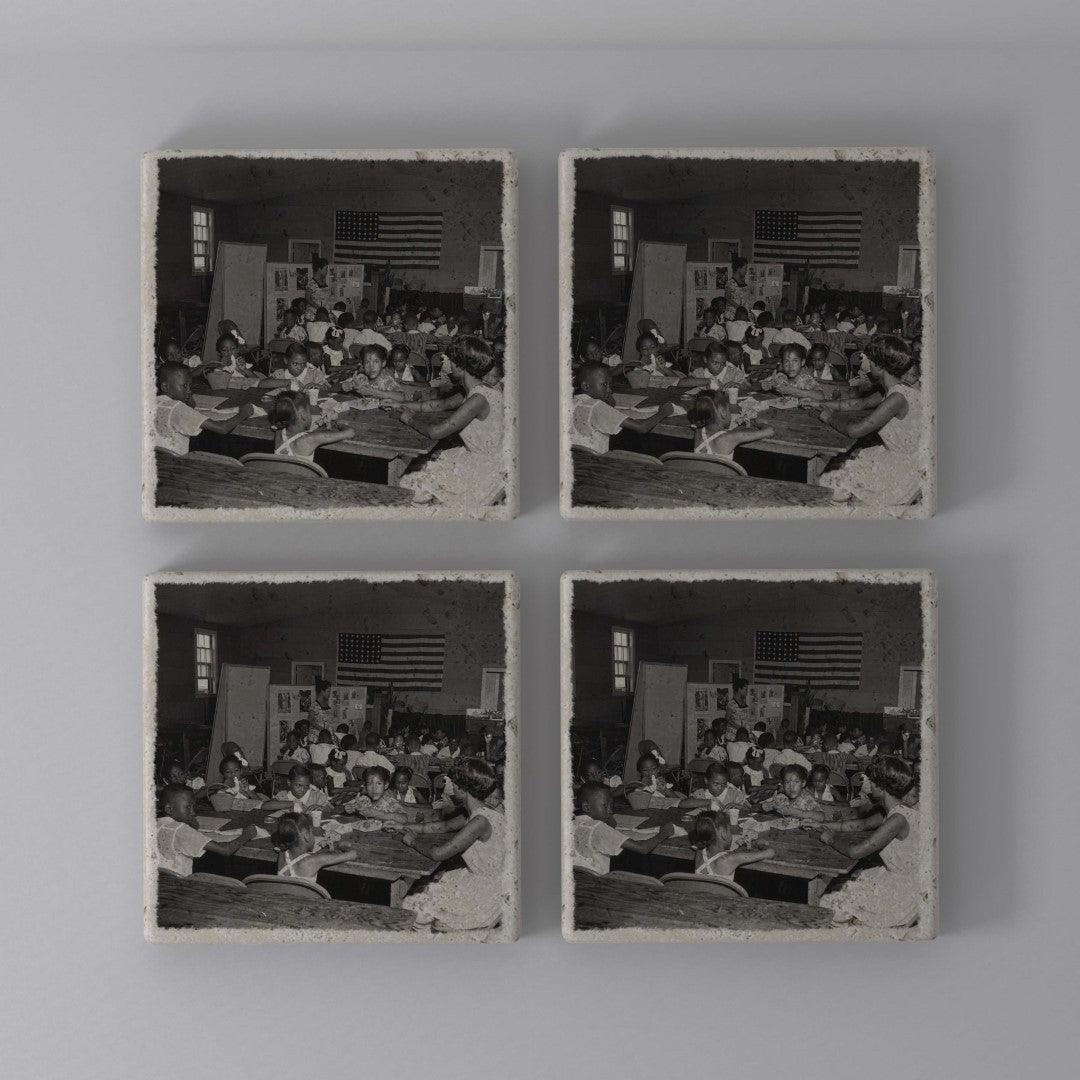 Crafted from genuine marble and travertine, these coasters transform the everyday into art. Each piece showcases an archival image from The Legacy Line — a small but powerful reminder of history at your fingertips.