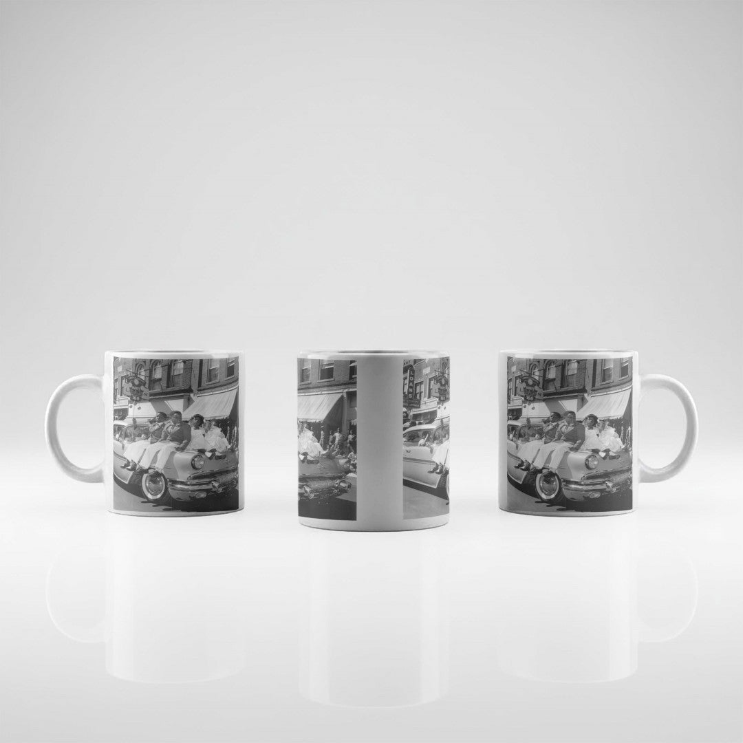 Each morning becomes a moment of reflection with these durable ceramic mugs. Archival imagery wraps the surface, turning coffee breaks into conversations about legacy.